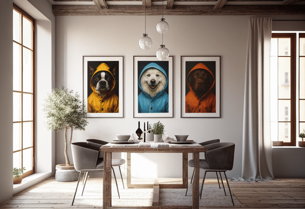 Whether you want a digital file to print yourself or a finished piece shipped to your home, we’ve got options to match every space and every dog lover’s vibe.