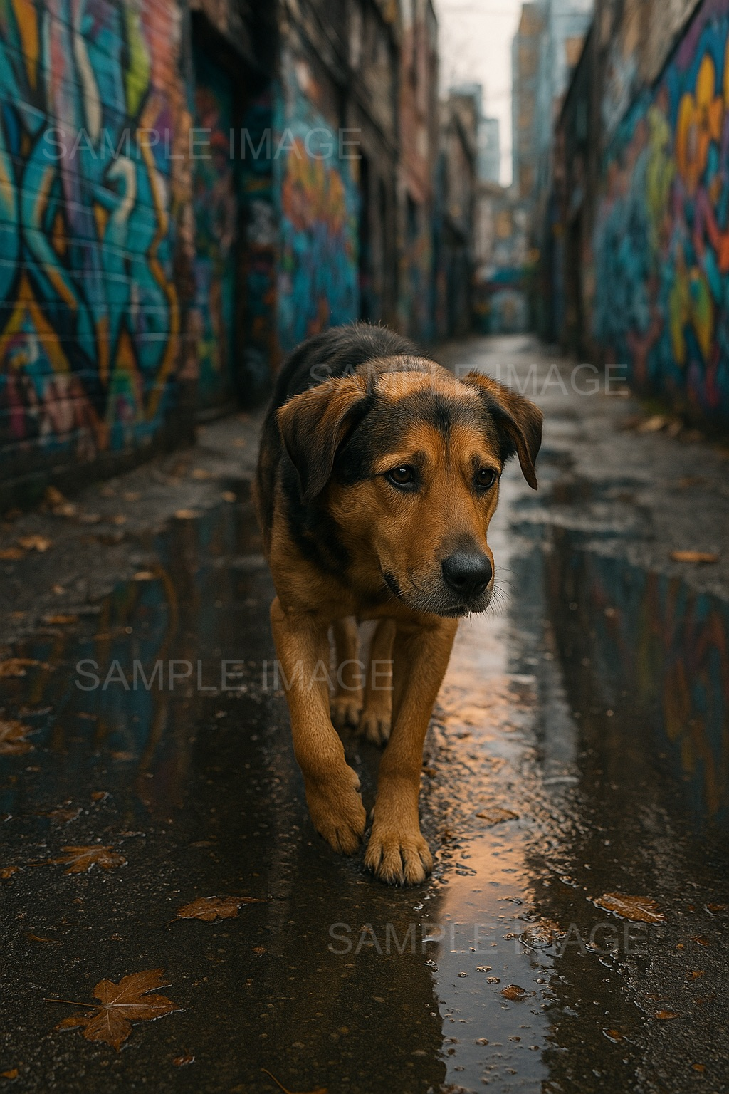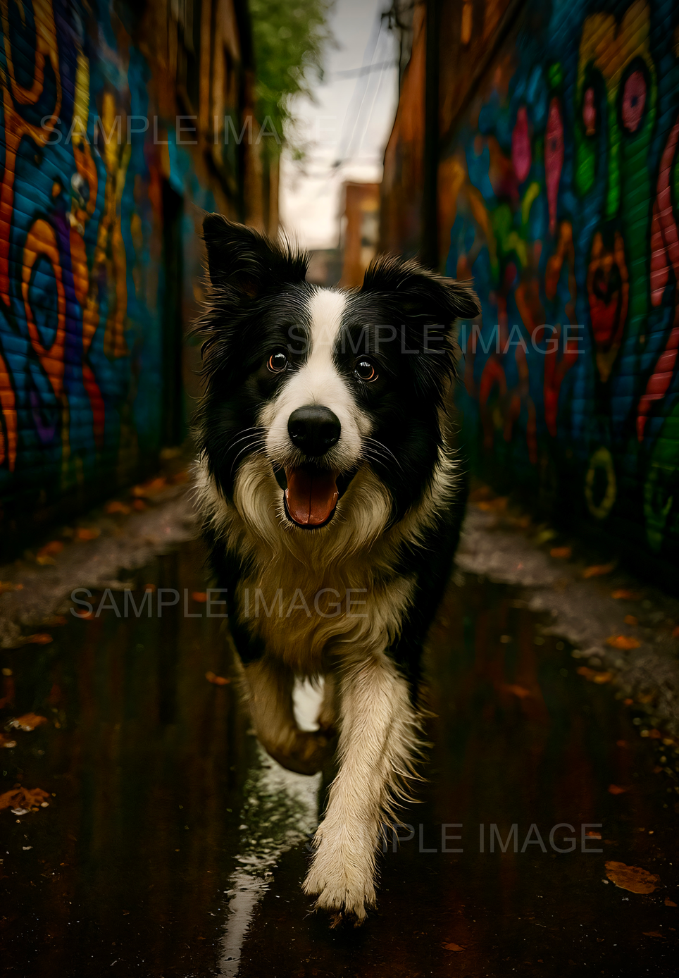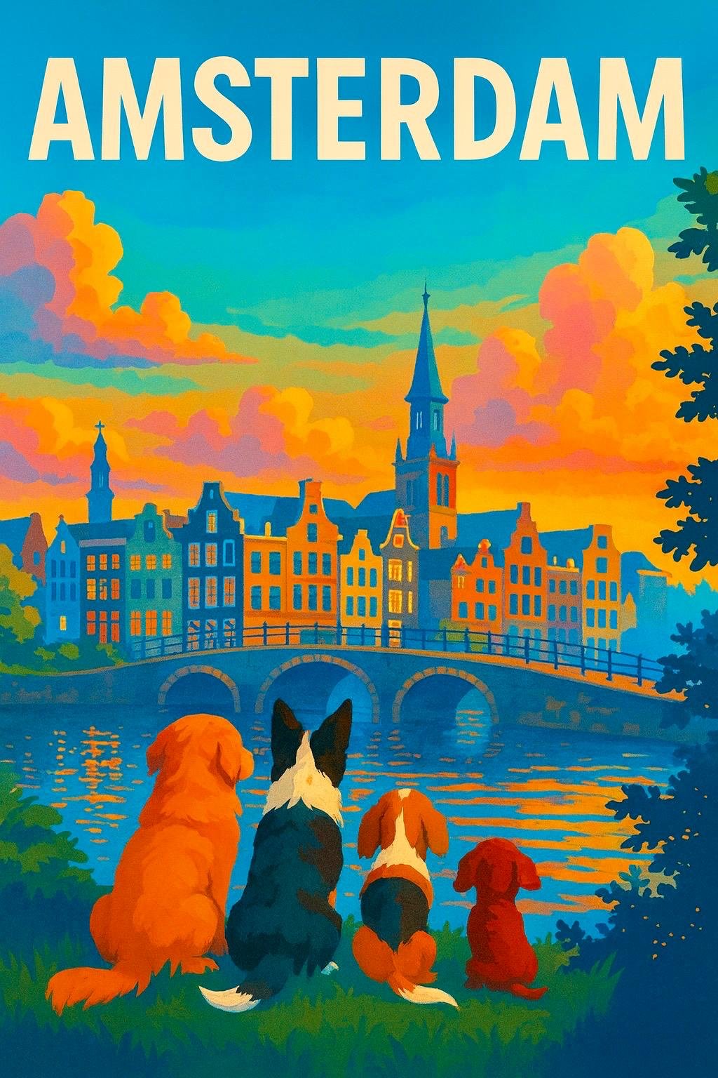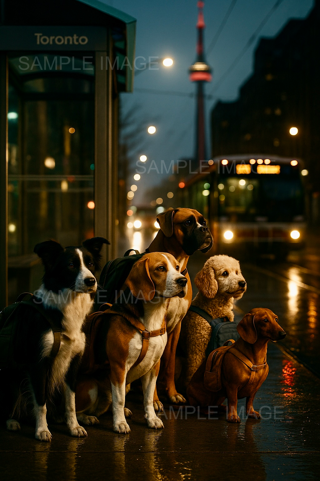 Street-style adventures: streetcars, cafés, graffiti walls — all with paws in the spotlight.
